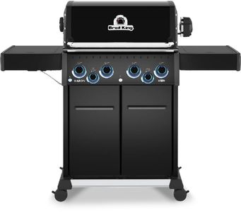 The Baron™ 490 Pro Shadow delivers power, versatility, and style for unforgettable backyard cookouts. With 630 sq. in. of total cooking space, including 460 sq. in. primary area and a stainless-steel warming rack, it is built to handle a crowd. Four stainless steel patented Dual-Tube™ burners deliver up to 40,000 BTU for even heat and precise control. The full coverage stainless steel Flav-R-Wave™ vaporizes drippings to maximize flavour, and reduce flare-ups. A 10,000 BTU side burner handles sides and sauces, while a 15,000 BTU rear rotisserie burner and kit enhances your grilling options. The stainless steel cooking grids provide superior heat retention, and the rust resistant cast aluminum cookbox offers lasting durability. The Shadow’s sleek black styling is complemented by blue LED control knob lights for nighttime use. Includes a Limited Lifetime cookbox warranty and 15-year warranty on parts and paint, ensuring years of reliable performance.Read More