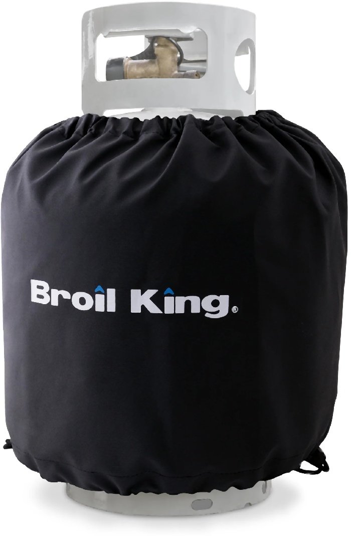 Protect your propane tank with the Broil King Propane Tank cover. This sleeve fastens to a 20lb. North American Propane tank and features a screen printed Broil King logo. The sleeve slips over the top of the tank and the the draw strings easily secures the cover in place.Read More