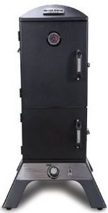 The Vertical Gas Smoker features 770 sq. in. total cooking space, four adjustable stainless steel cooking grids, Sure-Lite™ electronic ignition system, Adjustable Roto-Draft™ cast aluminium damper system, and two rugged steel doors with gasket premium latch system.Read More